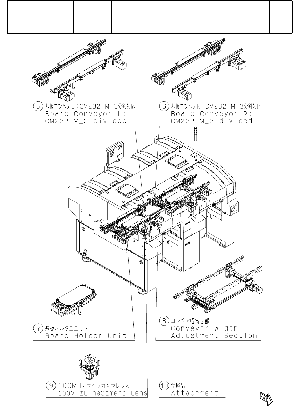 Kit Name Rank Q'ty 番号 Pa rt No . キット名 品番 数量 ラン ク 頁 Page No. 2 CM2 32- M : モジュラ ーマウ ンタ CM 232-M:M odular Placement Ma chine キットリスト Model No. 製品品番 Model Name 製品名称 NM-EJM9C KIT LIST 1 5 N610116670AA Board Conveyor L:CM…