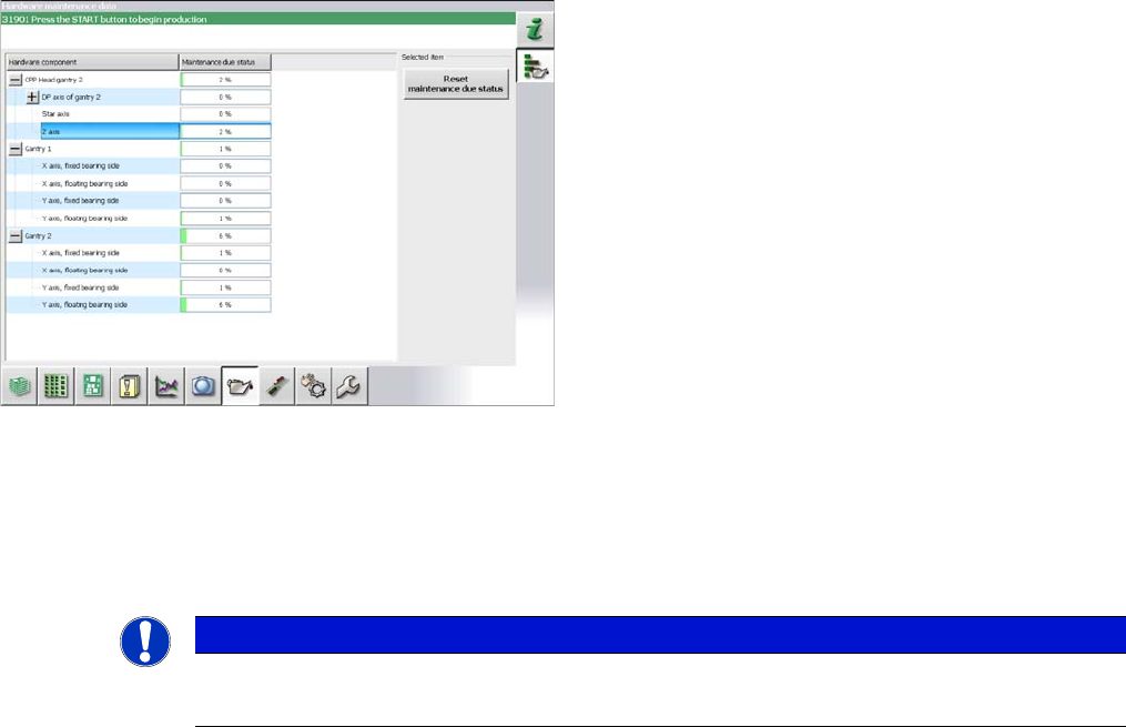维护状态通过贴片机周期、温度和操作时间进行计算。此状态通过一个进度条 (0 - 100%) 显示。