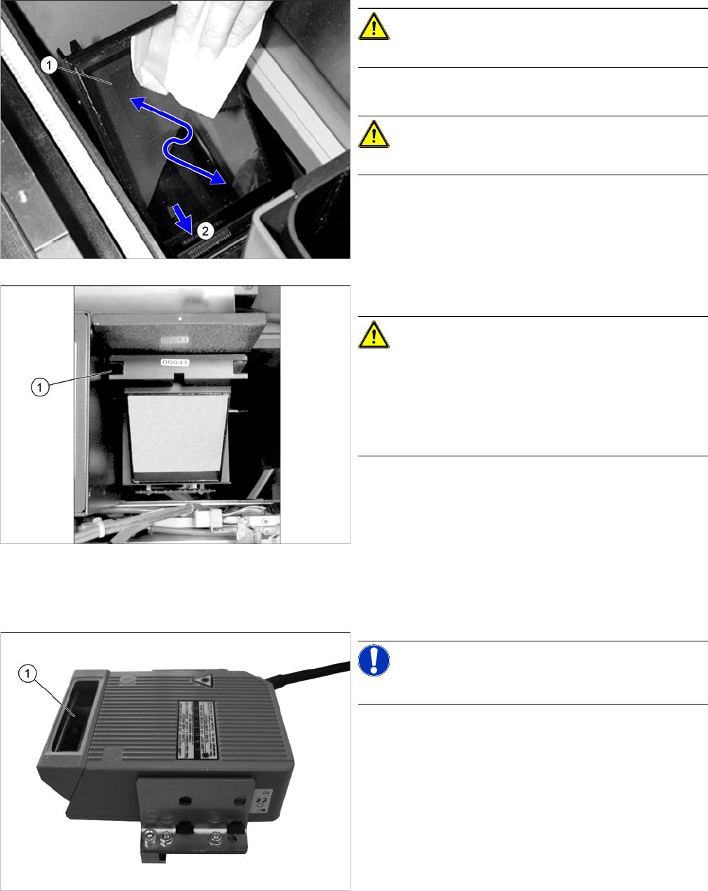 ► 清除玻璃片下方导槽 (2) 中散落的任何元件。