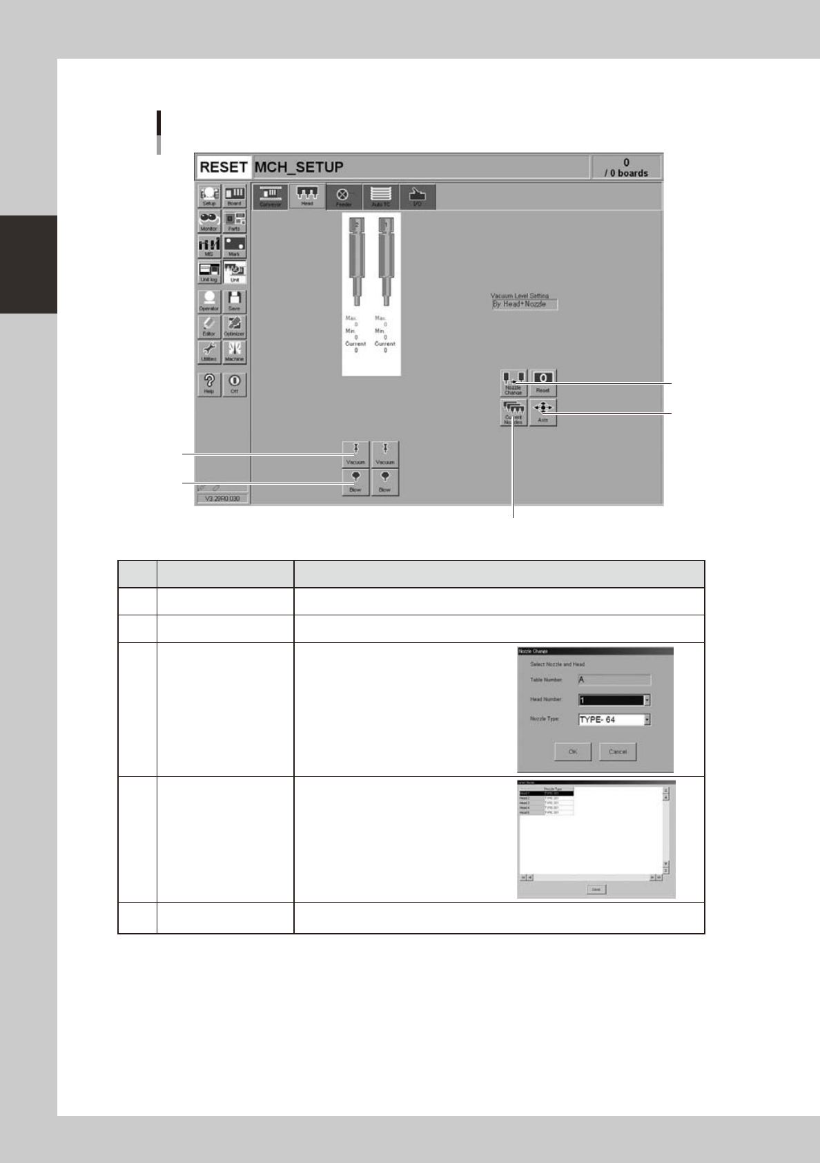 1 Vacuum Turns the vacuum of each head on or off.