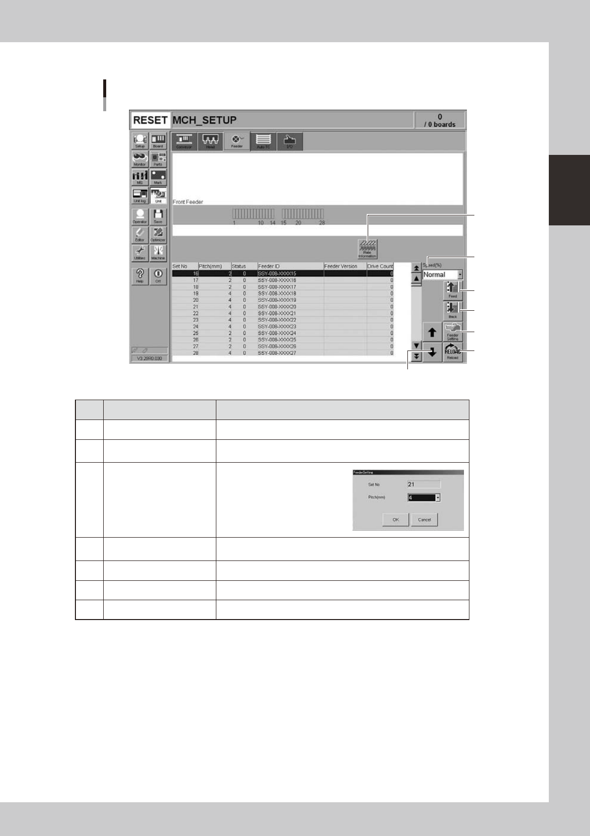 [Unit] – [Feeder] screen