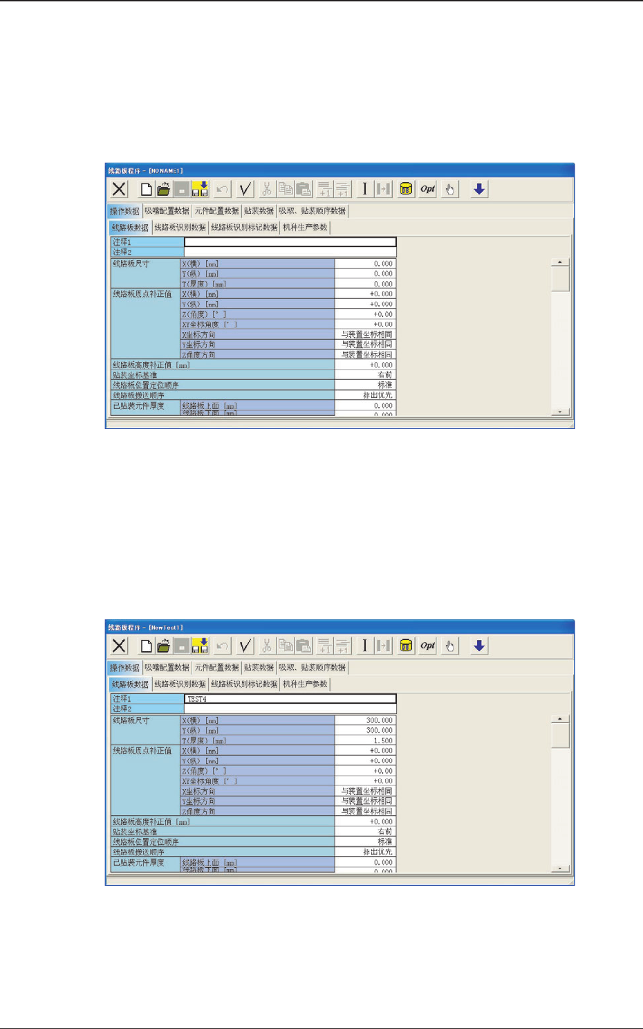 选项卡编辑线路板程序数据。