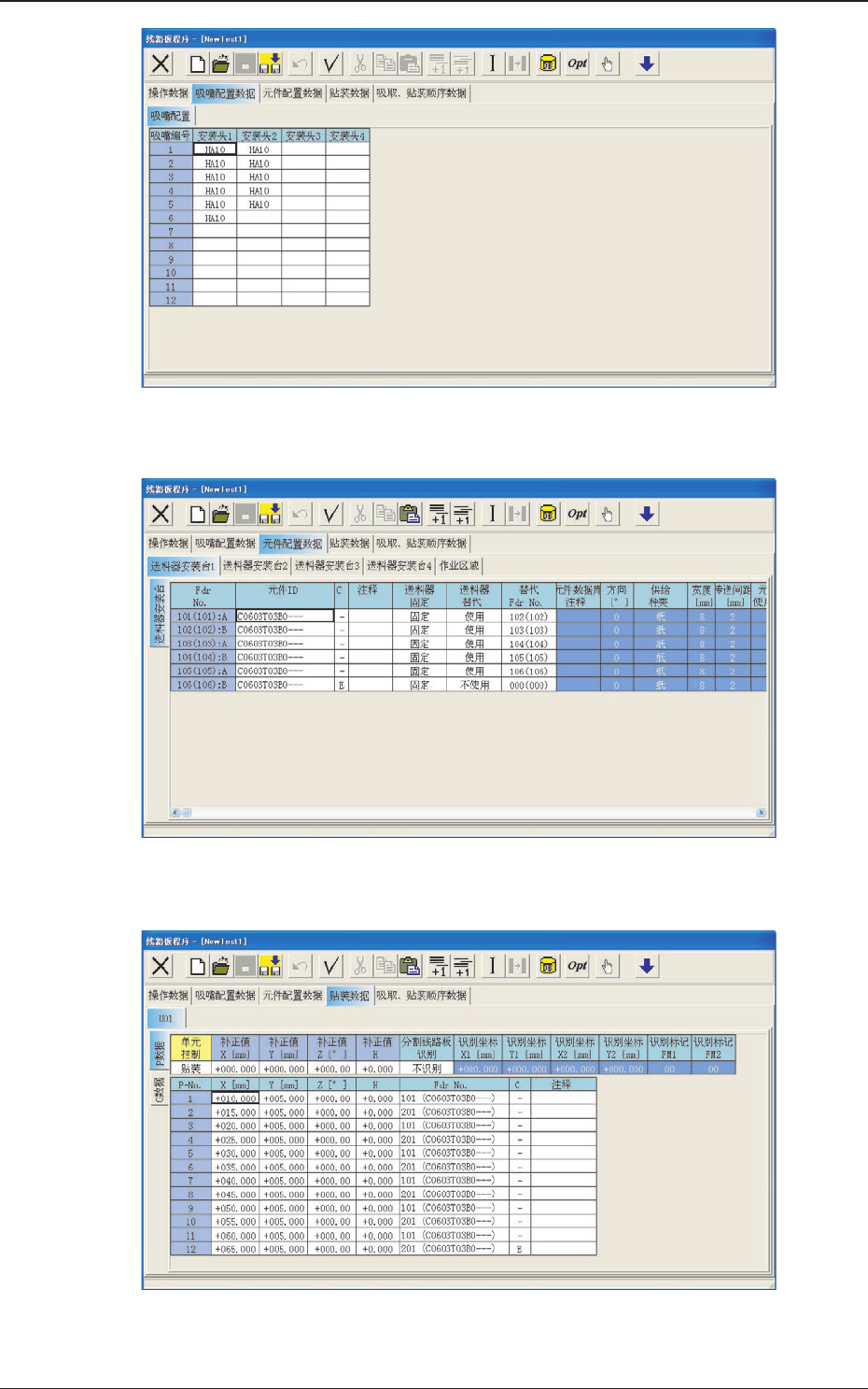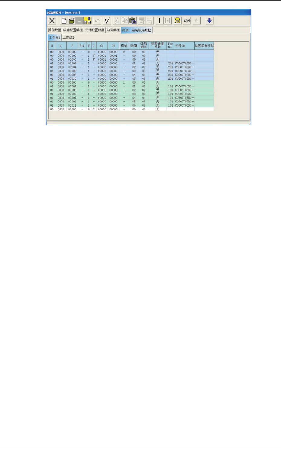 3 - 52 2.2 2.2 2.2 2.2 2.2 “ 线路板程序 线路板程序 线路板程序 线路板程序 线路板程序 ” 编辑界面 编辑界面 编辑界面 编辑界面 编辑界面 0508-004 Fig.3C39-2 Fig.3C39-2 Fig.3C39-2 Fig.3C39-2 Fig.3C39-2 “ 吸嘴配置数据 吸嘴配置数据 吸嘴配置数据 吸嘴配置数据 吸嘴配置数据 ” 选项卡 选项卡 选项卡 选项卡 选项卡 Fig.3C39-3 …