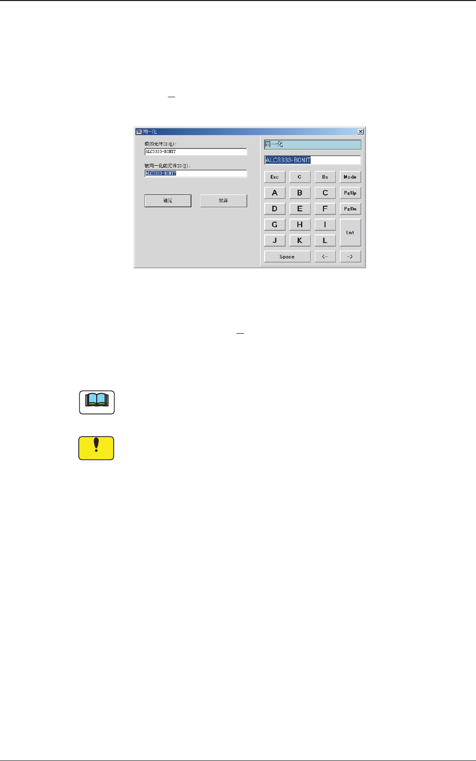 4 - 10 1.2 1.2 1.2 1.2 1.2 “ 选择元件 选择元件 选择元件 选择元件 选择元件 ID ID ID ID ID ” 界面的基本操作 界面的基本操作 界面的基本操作 界面的基本操作 界面的基本操作 0508-004 1.2.6 1.2.6 1.2.6 1.2.6 1.2.6 同一化 同一化 同一化 同一化 同一化 (1) 选择根的元件 ID 。 选中的元件 ID 显示为蓝色。 (2) 按 [ 同一化 ( M)] …