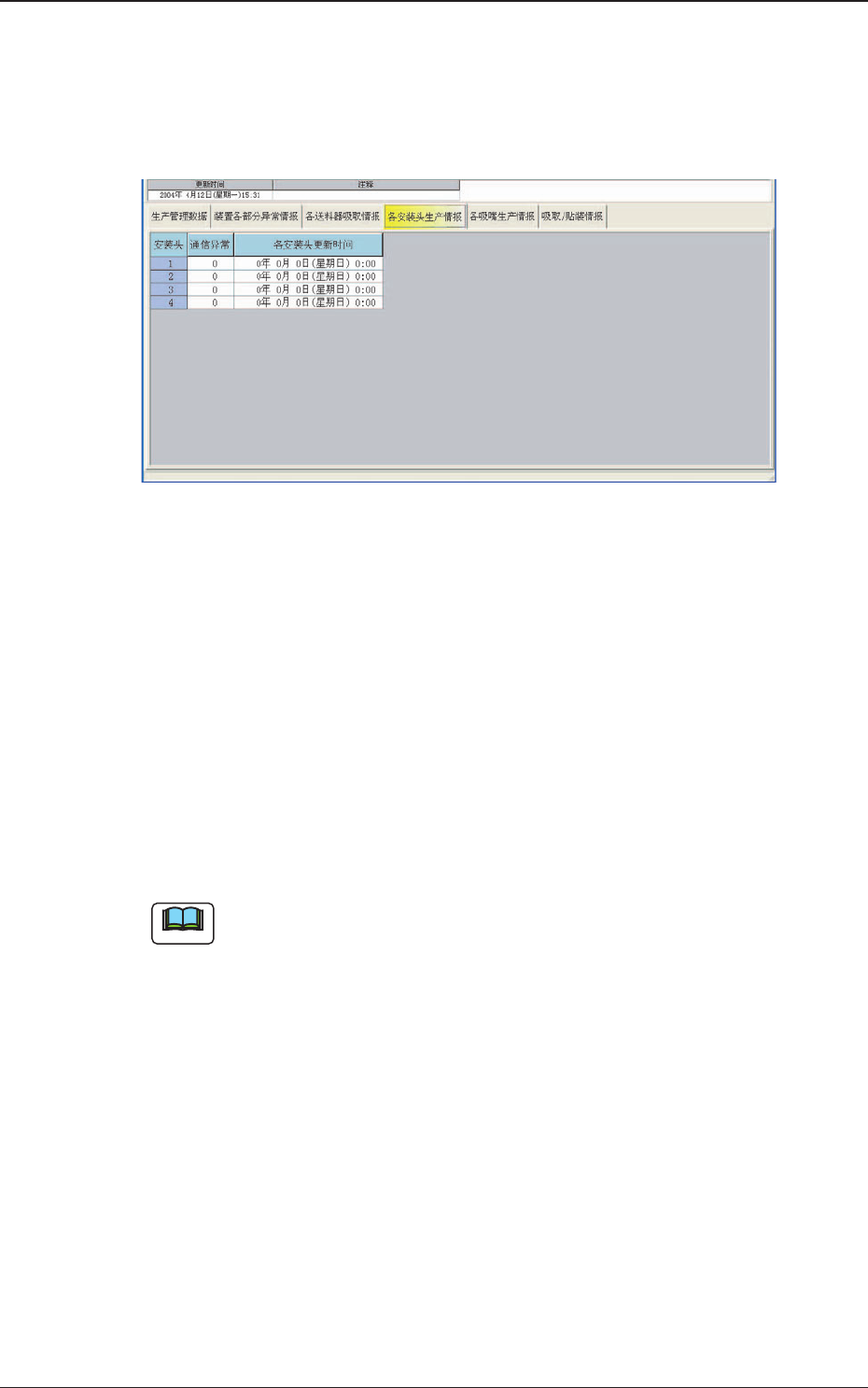 在 “ 装置生产情报 ” 界面中,按[ 各安装头生产情报]Tab,显示以