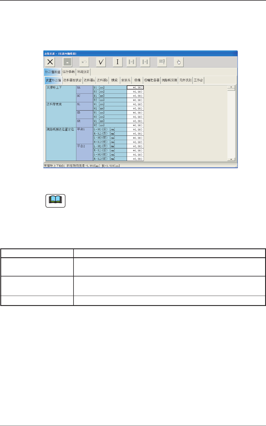 补正值数据 设定有关装置运行的各单元部的位置调整和精度的补正值数
