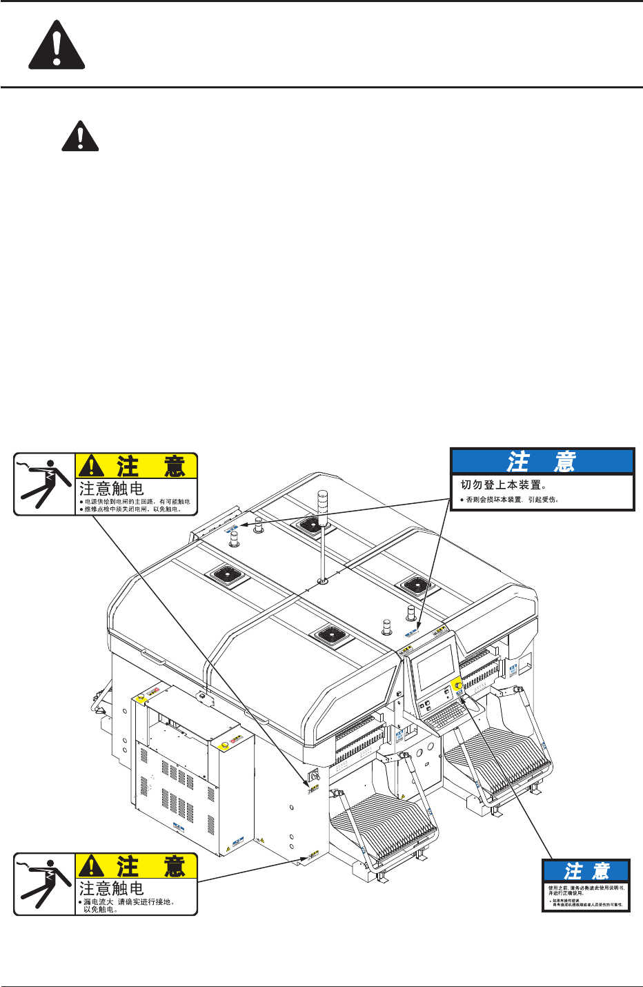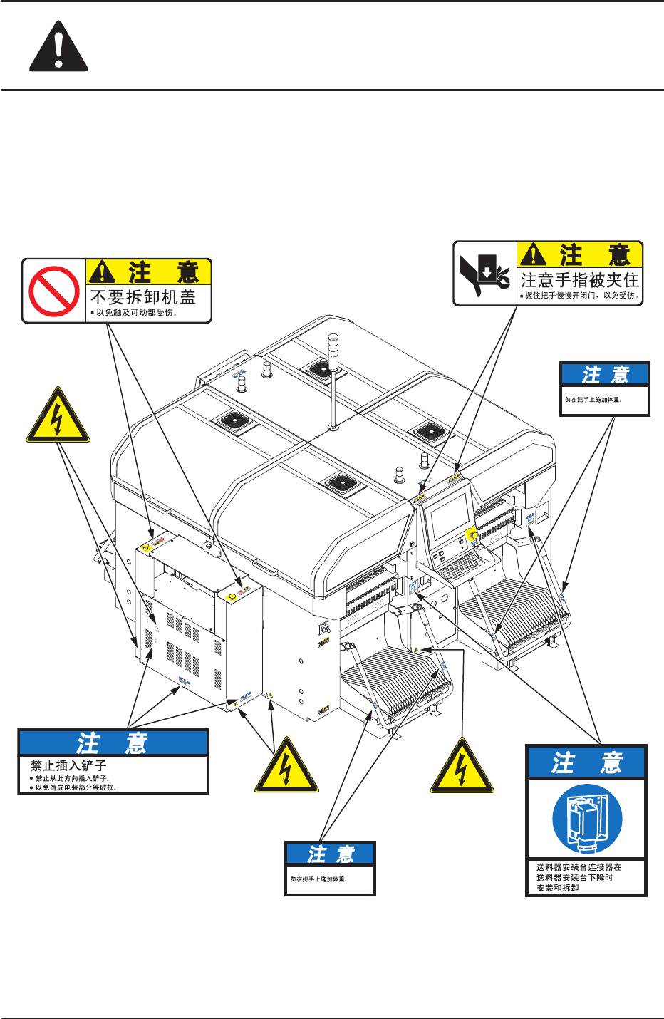 警告标签因破损无法看清楚内容时,请联系本公司服务部门更换新的标签。