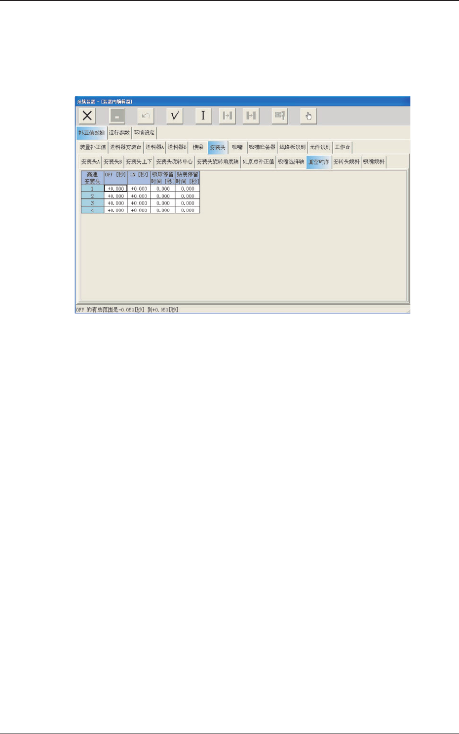 在 “ 补正值数据 ” 选项卡中,按[ 安装头]Tab,再按[ 真空时序]