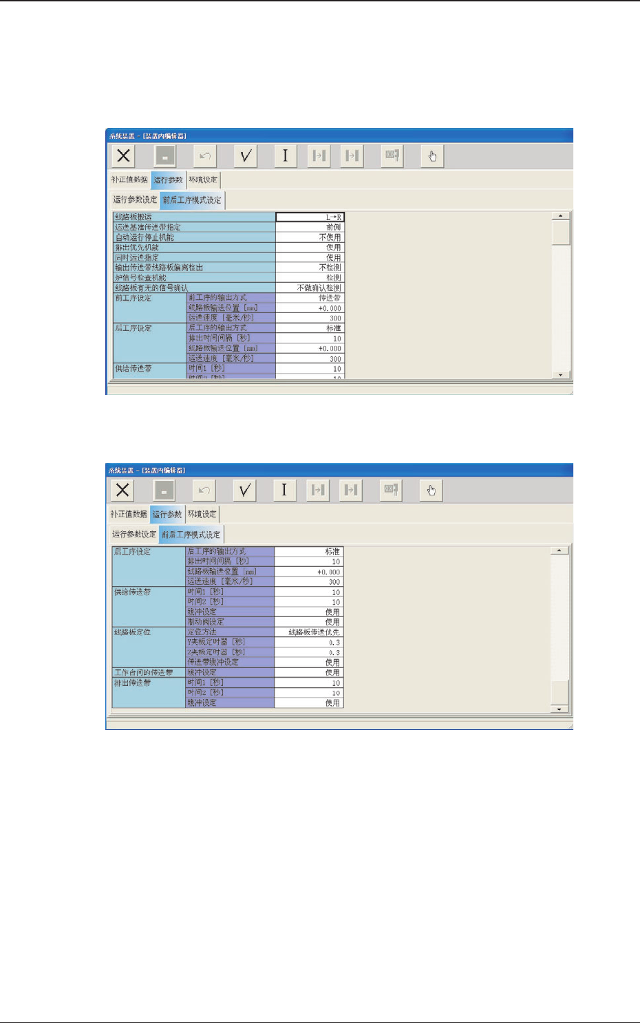 在 “ 运行参数 ” 选项卡中,按[ 前后工序模式设定]Tab,显示以下
