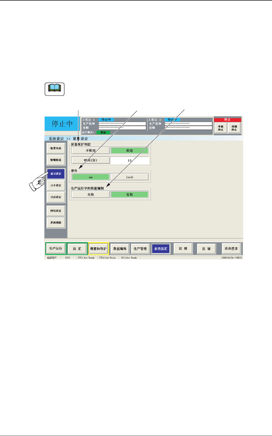 可以进行屏幕保护功能的设定、单位的切换、生产运行中的数据编辑