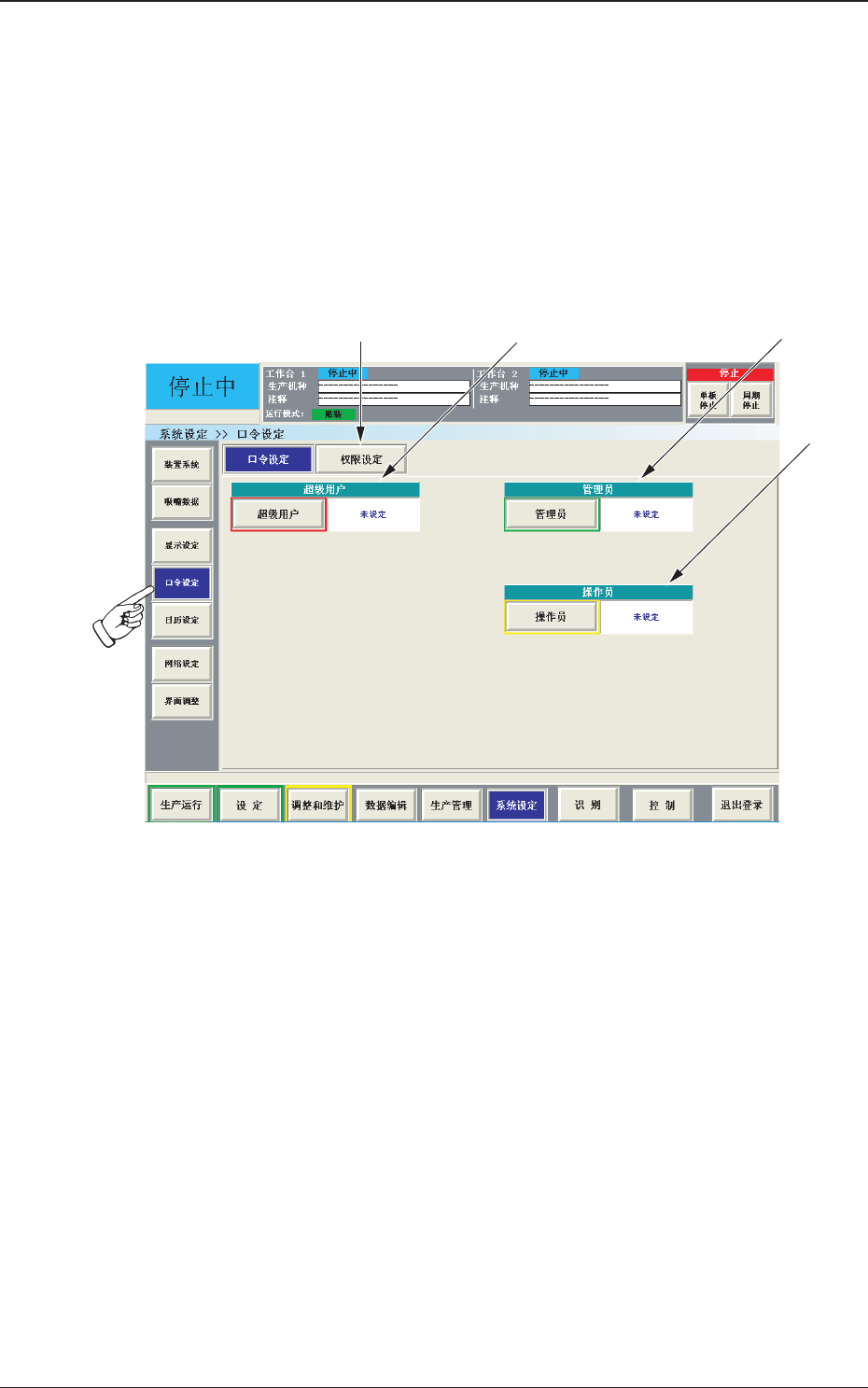 系统设定 菜单栏的[ 口令设定] 按钮,显示 口令设定