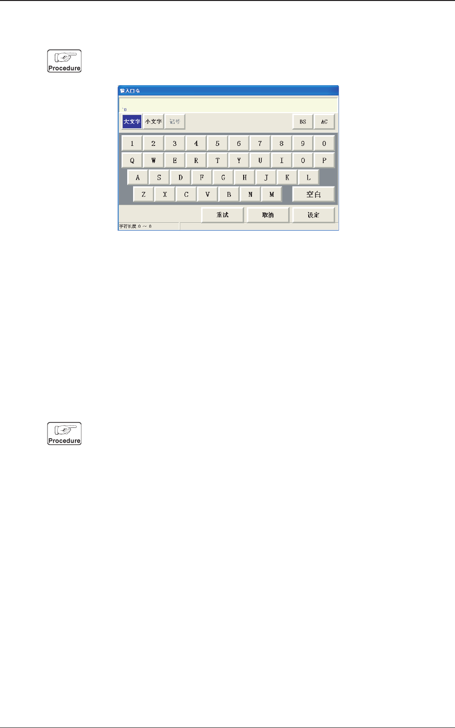 (1) 取消所设定的口令时,按下相应的用户权限按钮,显示