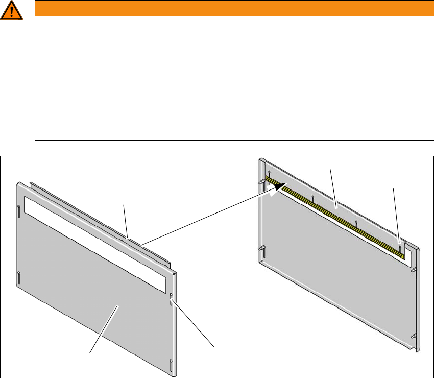 Üzemeltetési útmutató SIPLACE X-Sorozat S 2 Üzembiztonság A 713.0 jel ű szoftververziótól Kiadás: 11/ 2019 2.6 Biztonsági berendezések 79 2 2 Ábra 2.6 - 4 Benyúlás elleni védelem - kívül és belül (1) Benyúlás elle ni véd…