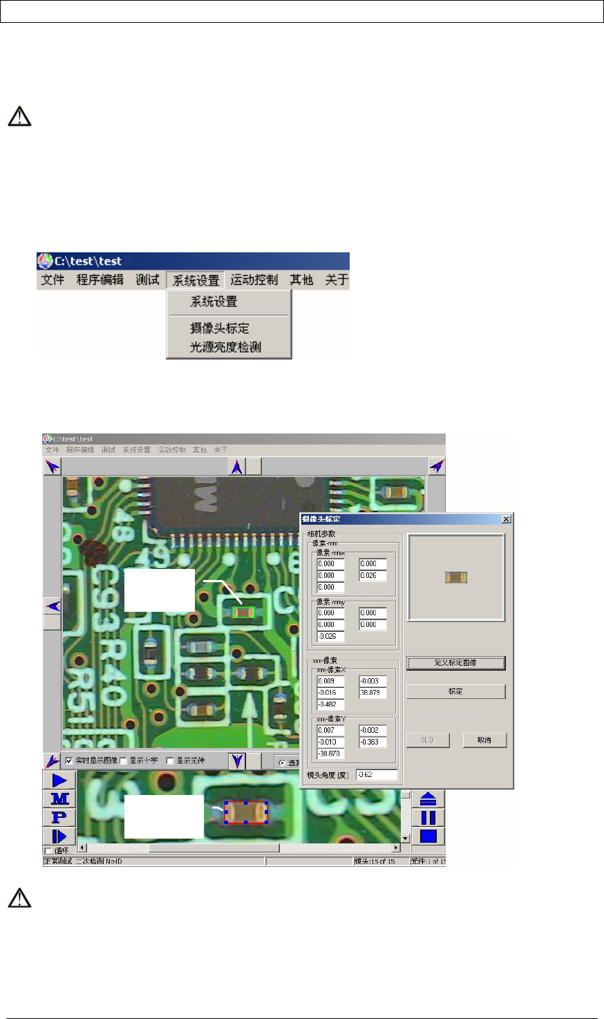 注意:当移动镜头,出现元件标准框偏斜了元件本体时,需要进行标定的工作。