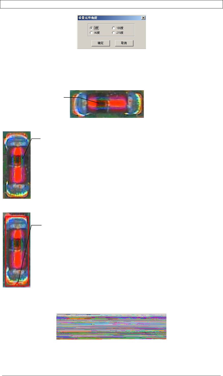 第四章 测试程序的制作(提高篇) | 53 角度选择的标准:对于没有极性的元件,旋转 0 度和 180 度相同,旋转 90 度和 270 度相同, 此时以注册的标准位置为零度,看要将标准逆时针旋转多 少度才是当前元件摆放位置,则选 择此角度;对于有极性的元件,注册时要定义哪端为零度 ,再看将此端逆时针旋转多少度后 才是当前元件摆放位置。以玻璃二极管为例,说明角度如何旋转。 二极管的标准如下图: 若实侧元件如下图放置: 角度设置完成后,元…