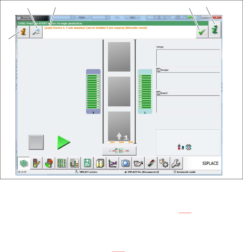 如果贴片机工作期间出现警报,那么用户界面状态区域的警报消息将显示为红色。警报信息图标