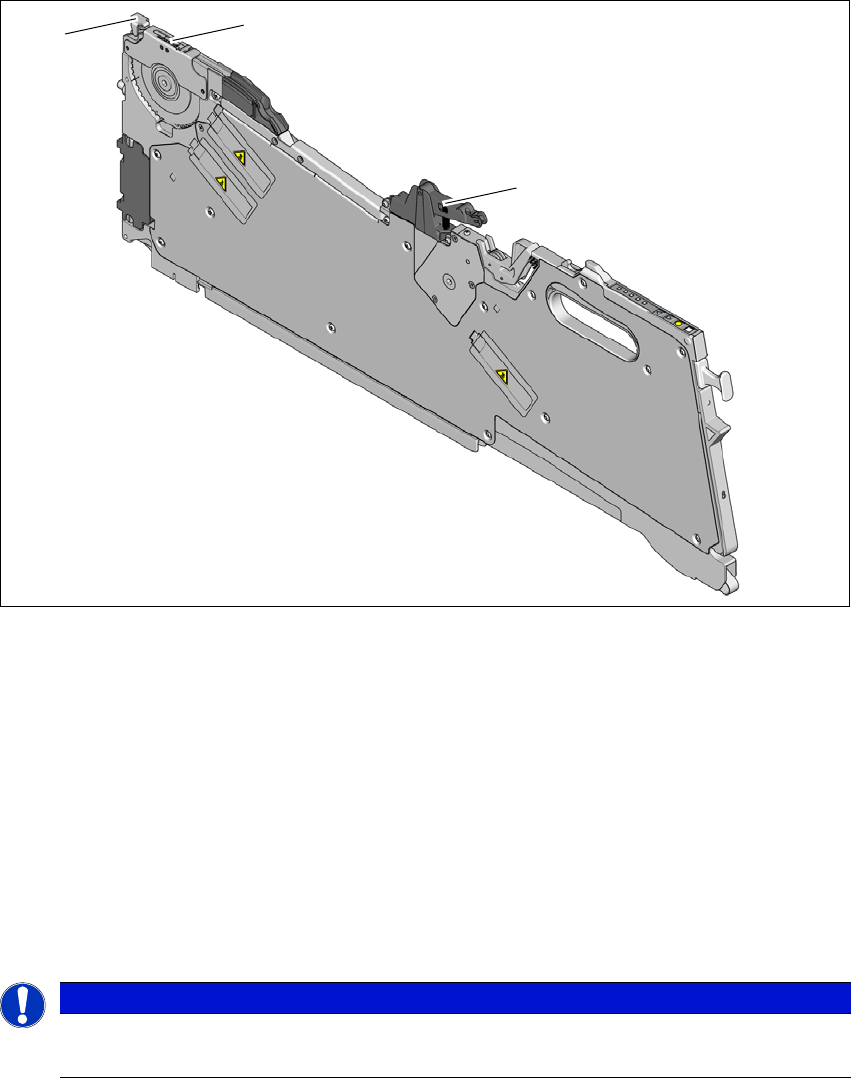 5 贴片机上的作业 《用户手册》 SIPLACE E 5.11 设置供料器模块 使用软件版本 SC 708.0 或更新 2014 年 12 月版 226 用锁销将 SIPLACE Smar tFeeder E 锁止在转换料台的适当位置 。从转换料台上拆下供料器模块 的程序如下: 拉动拆卸握柄 (项目 1) 。状态显示屏变为红色 ,然后熄灭。 使用拆卸握柄将供料器模 块从锁止杆 (项目 3)和止动杆 (项目 4)中拉出。 拆下…