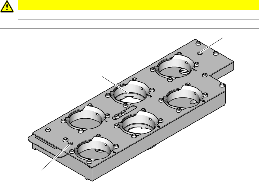 吸嘴盘被安放在一个共用的支撑件上。它们用两个平行销对中,并用 4 个按钮固定。具体位置由