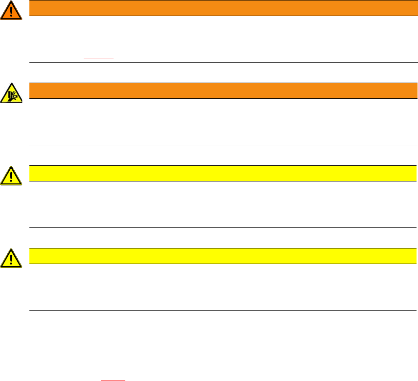 《用户手册》 SIPLACE E 2 操作安全 使用软件版本 SC 708.0 或更新 2014 年 12 月 版 2.6 贴片机的其他安全须知 75 2.6 贴片机的其他安全须知 2.6.1 转换料台入坞或出坞的安全须知 2 2 2 2 2.6.2 清空废料带容器时的安全须知 清空时,必须将废料带容器从转 换料台中拉出。在这样做时存在拇指被夹住的危 险。为了防止发 生这种情况,请遵循第 5.9.2 节,第 221 页上的安全须知。 警…