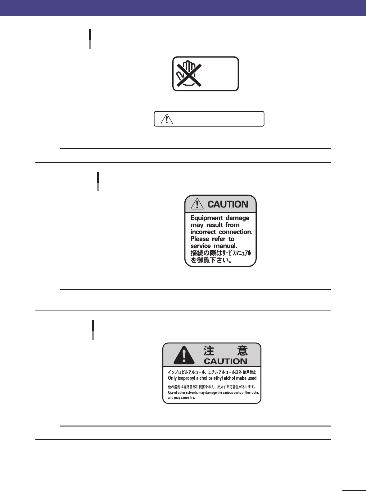 Using other than the specified solvents might damage the machine or create a fire hazard.