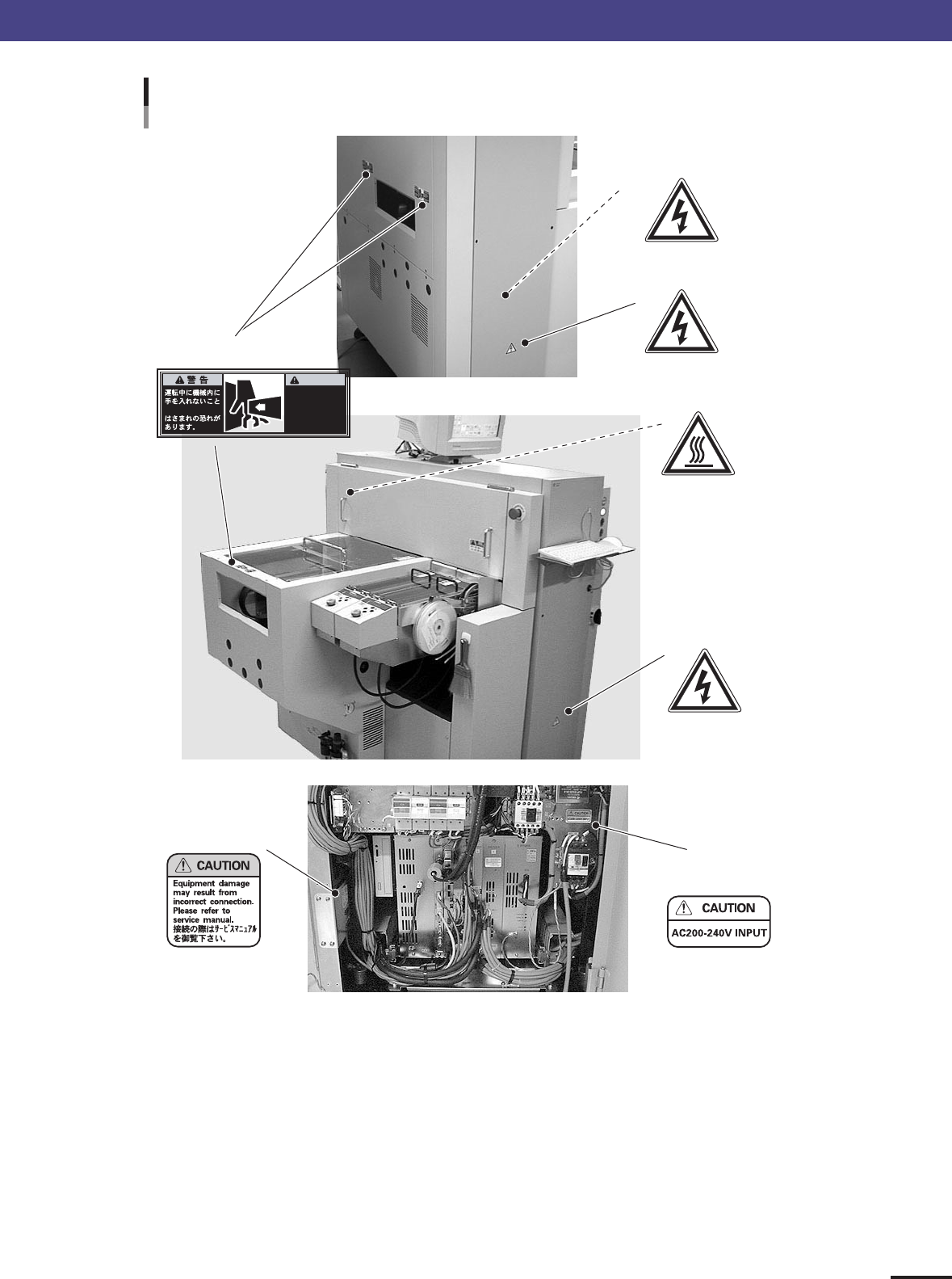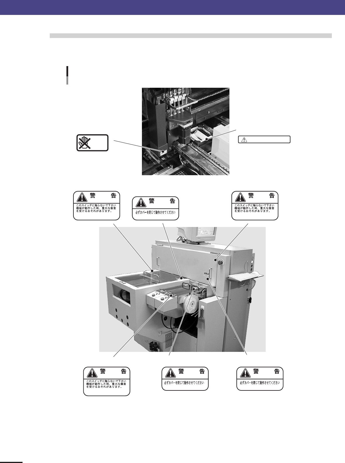 ix Before starting work 1. Safety Warning labels Attachment positions (2) ■ Main power connection section ■ Rear panel ■ Switching power supply (inside of panel) ■ Motor section (inside of cover) ■ Signal cable connector…