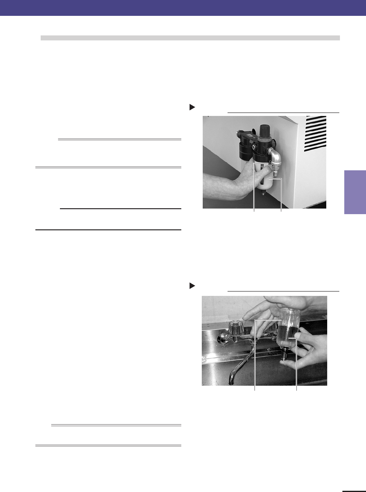 The drain cock at the bottom of the filter cup is an auto-drain type. It