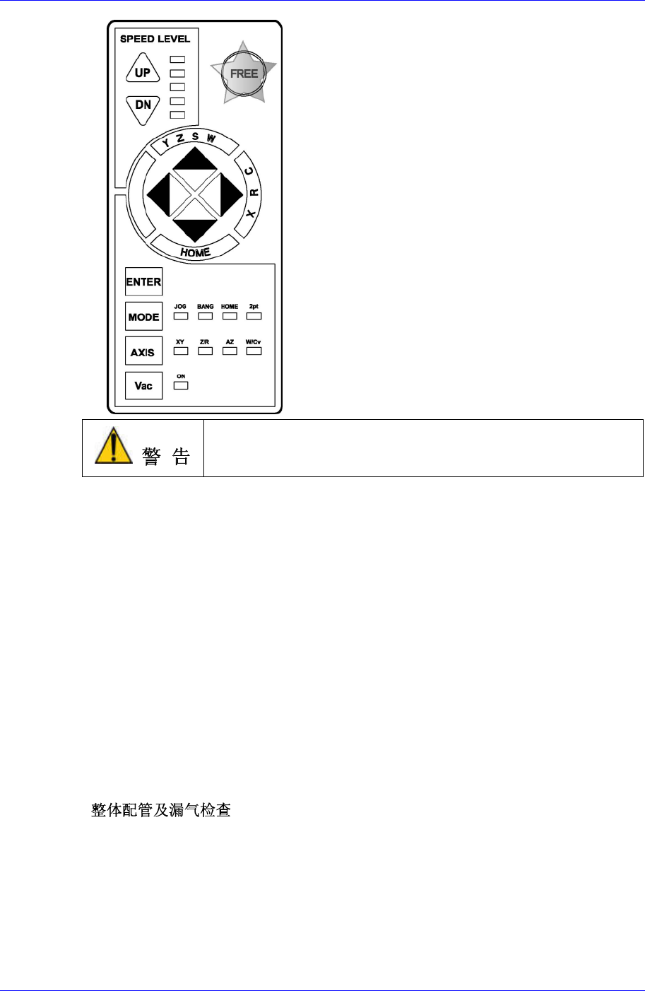 单击 Teaching Box 的“Motor Free”键后,单击正面操作面板的