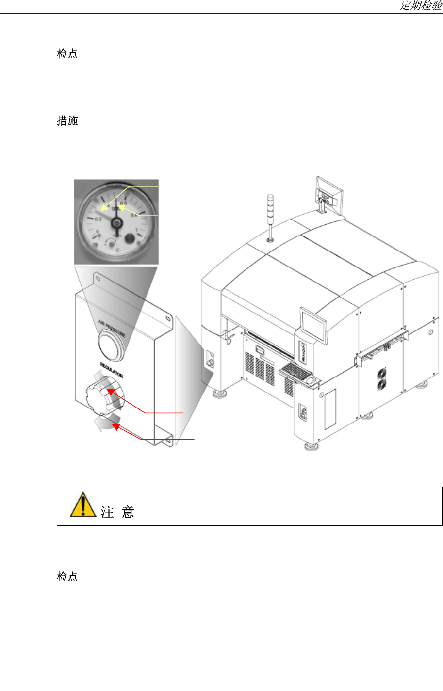 如果 Blow Air Regulator(压力调节器)显示的压力为大于正常压力(0.13Mpa)的