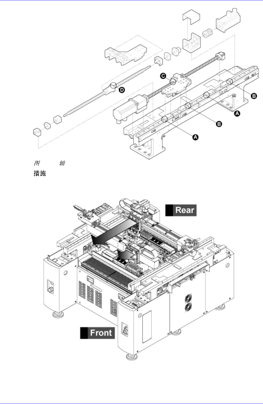 Samsung Component Plac er SM310 Maintenance Refer ence 4-3. Y L 按 T eaching Box 的 Motor Free 键,使装备处于 Free 状态。 /M Guide 操作 T e aching box ,最大限度把 Front 和 Rear X Frame Ass’y 移动到前 面,以防 Front 和 Rea r 的 Head Assembly 发生相…