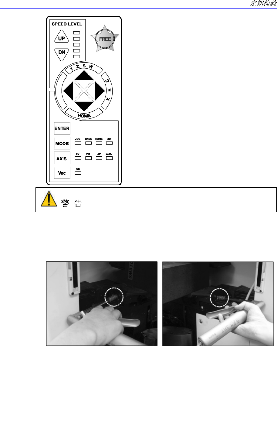 单击 Teaching Box 的“Motor Free”键后,单击正面操作面板的
