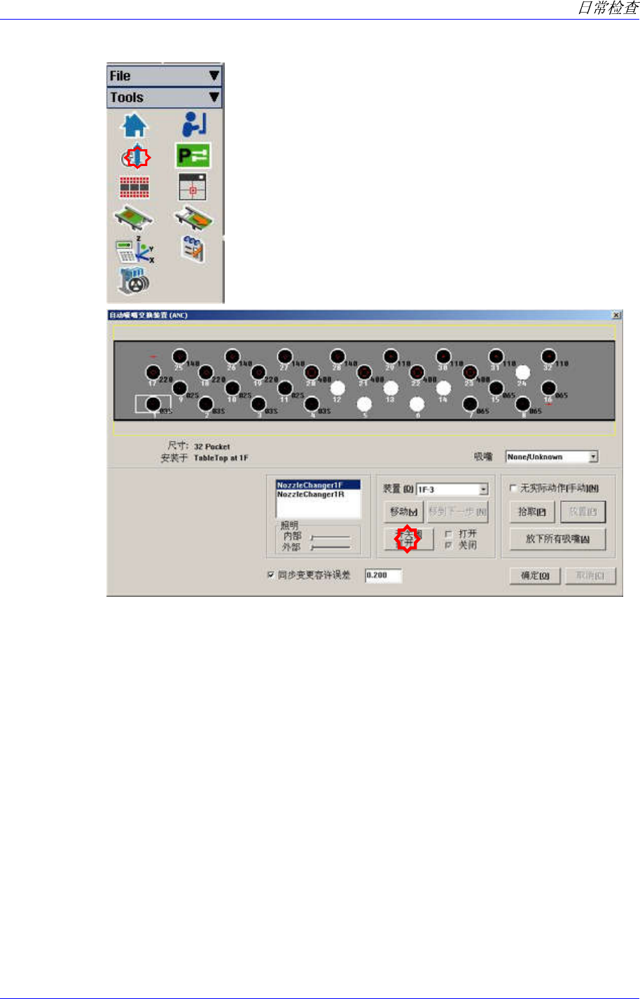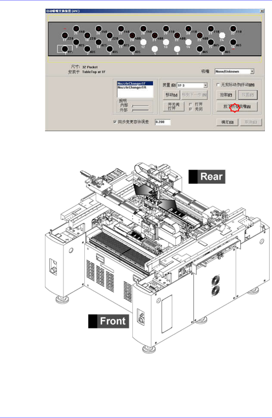 利用‘Put All Nozzle’命令把附着在 Head Assembly 的 Spindle 上的吸嘴移动